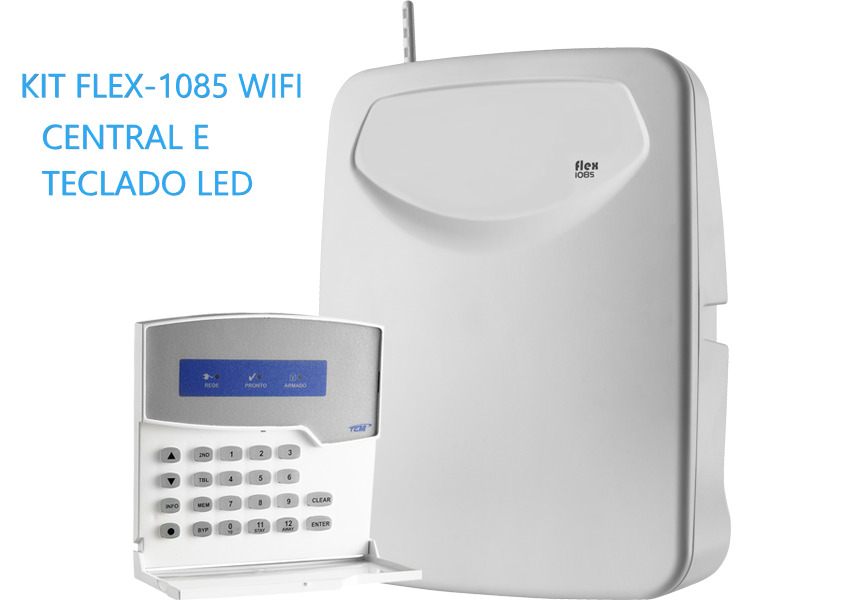 A central de alarme FLEX-1085 é sinônimo de modernidade e sofisticação em segurança patrimonial auto-monitorável.